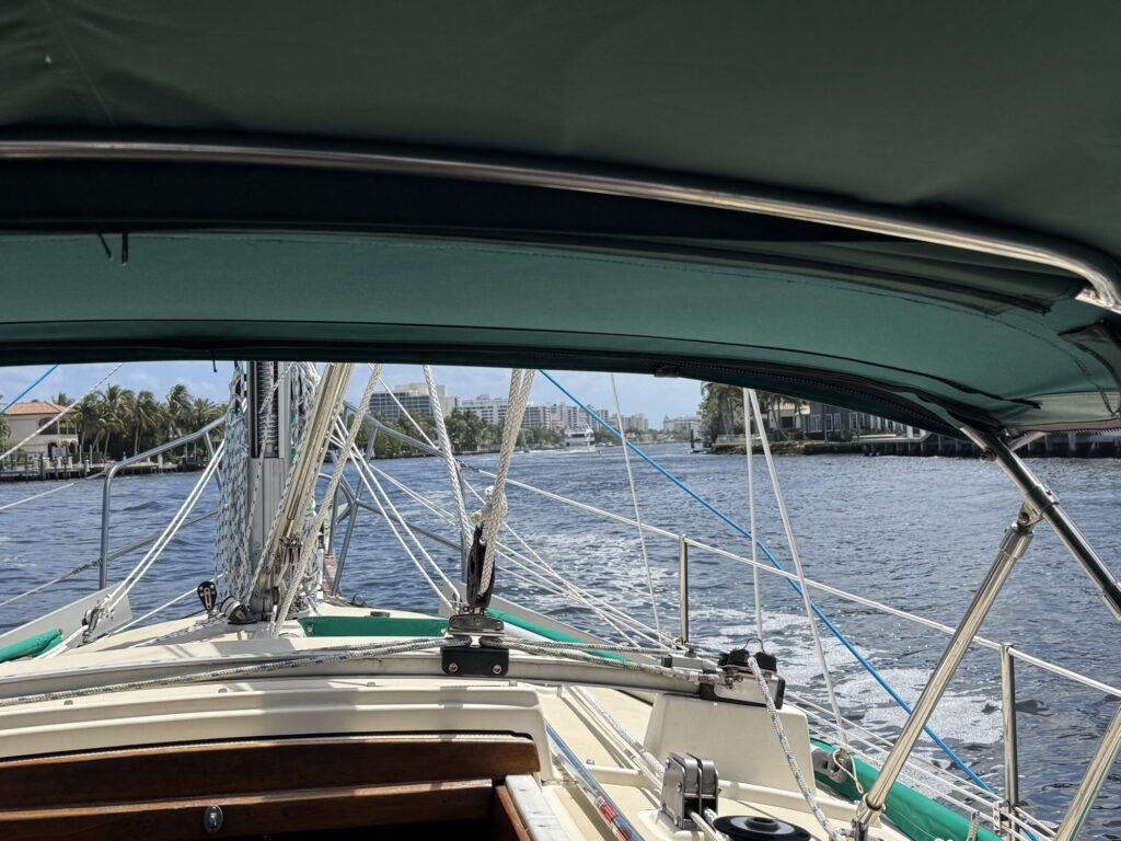The trip has started out on April 6th 2026. My sister and I flew down to the boat to get things ready and to start the grand adventure of getting this 27’ sea worthy sailboat actually worthy of making it to the Keys. We had grand plans, but Mother Nature said we had to wait. So we spent the week prepping, organizing things, and waiting out the worst of the weather. Once we had a window, we started making our way south. We decided to start out on the ICW and run the engine so that we could see how it was going to behave. I have not really had a chance to run the engine on this much yet so this was a good experiment. I did an oil change before we left and I checked the belts and coolant. Everything seems good to my limited diesel knowledge. Off we go! Our first ever bridge on the ICW was Hobe Sound bridge. It’s a bit nerve racking at first to call into the unknown and hope that someone is listening and that they even know what you are saying. Lo and behold we got a response and they actually opened the bridge! Success.