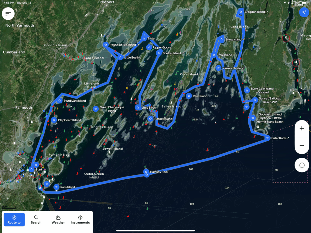 This weekend Im going to participate in the Casco Bay Circumnavigation Race. This is the first year that this race has been run by the GMORA (Gulf of Maine Ocean Racing Association). This race popped up on one of my feeds that I follow about sailing and I knew right away that I would have to give it a try. The race is a self administered race meaning that you pick your start time and day as long as it falls within September. You are then on your own to run the course, and to record and report your times. I’ll be tracking my times and reporting with an Garmin InReach which I find an amazing piece of equipment for sailing and my other outdoors adventures.