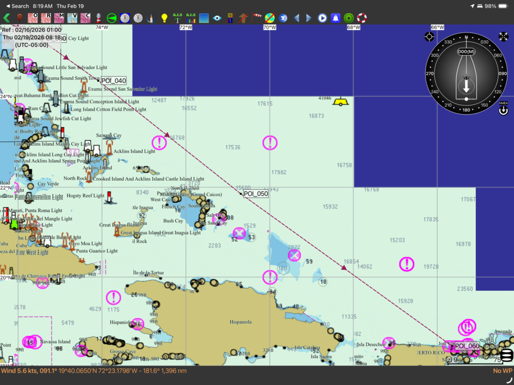 Our route will take us south toward St Thomas. We are still debating on a straight shot or trying to hug the coast. Im inclined to hug the coast where possible to help with swells and be close to land in case we need to divert for steering issues or some other unexpected problem with this boat.