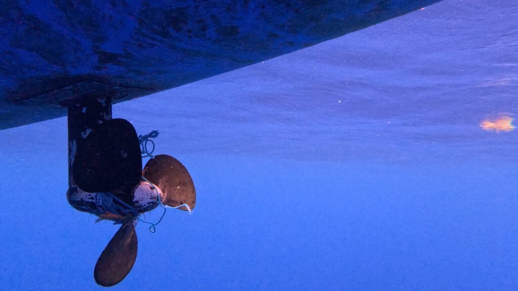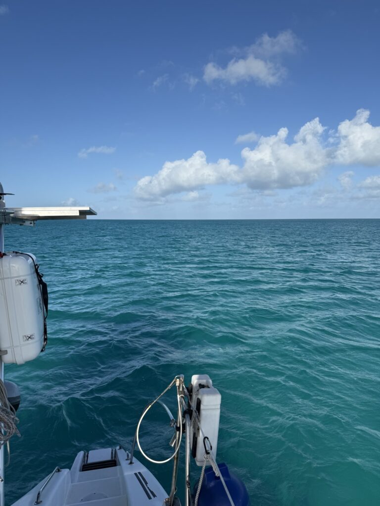 Update: 3-7-2026. We have been sitting at anchor at Cat Island in the Bahamas to wait out some difficult weather. We have been trying to sort out some challenges with the steering and the prop being tangled. The prop has sucked in the rope significantly more than expected at first look. This is probably due to stupidly trying to move the prop forward and backward while knowing the line was on there thinking it would self untangle.