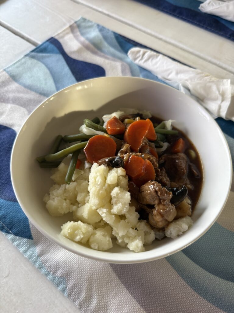 I was at the end of the time I could commit to the trip so I made the hard decision to head back home on the next flight out. I had a quick dingy ride over to the shore where I stayed at the Rolezz Resort. They have some very cute and colorful cottages and the owners are very accommodating. They took me in as a stinky vagabond of salt life for the last month and I cleaned up and even got an invite to dinner! One of the guests was cooking dinner for everyone and since they are Scottish she was making a boiled dinner. She called it cabbage and brown gravy. It was amazing. Poured over some cabbage bits, and some string beans with mashed potatoes and a gravy sauce made from Guinness and beef stock. What a special treat.